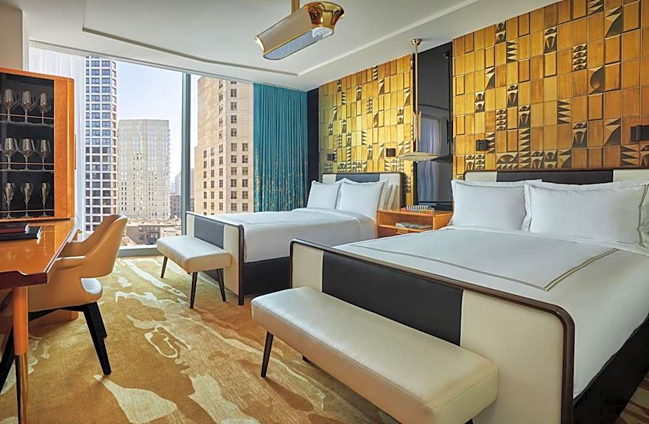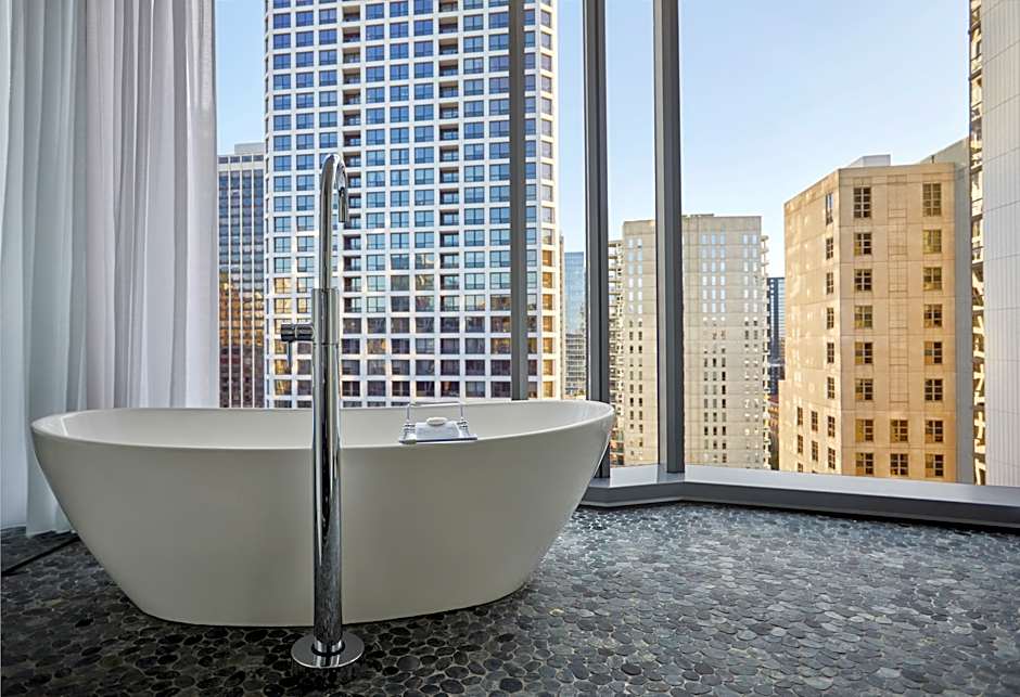 Offering views of Lake Michigan, this room includes a large bathroom with a luxurious rainfall shower head, a make-up mirror and upscale bath products.